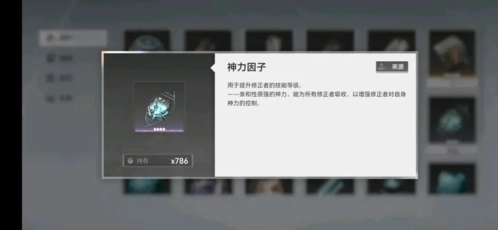 神力因子:技能点。升级角色的技能的时候会用到这个。