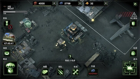 3、任务启动后,需先选定“部队部署”的位置,要留意红圈区域内是不能布置部队的。建议先查看周边的资源建筑,测算障碍物和资源点之间的距离,尽可能达成任务目标以获取更多资源。前期任务的难度不高,成功完成后获得的宝箱里,有可能会出现5.56毫米机枪、MP5冲锋枪或者火炮之类的装备。