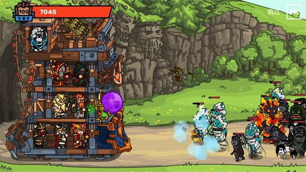 7、军队中的每个角色都具备独特的特殊能力,每波战斗仅可使用一次。这在扭转战局时能发挥巨大作用。屏幕底部会显示若干按钮,让您得以运用各角色的特殊技能。其中我最青睐的是弓箭手,他能从上方朝您选定的目标区域倾泻箭雨。使用这些强力技能时,优先消灭前排敌人是最佳策略,务必在它们对塔楼造成破坏前将其清除。