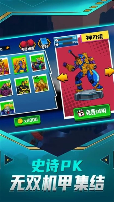 1、独特的机甲英雄等你解锁,技能强大,由你操控展开战斗。