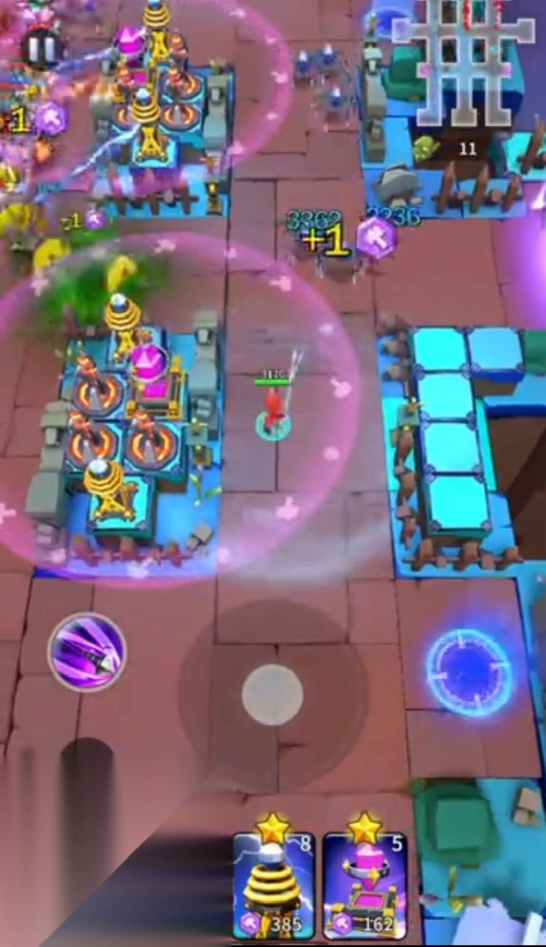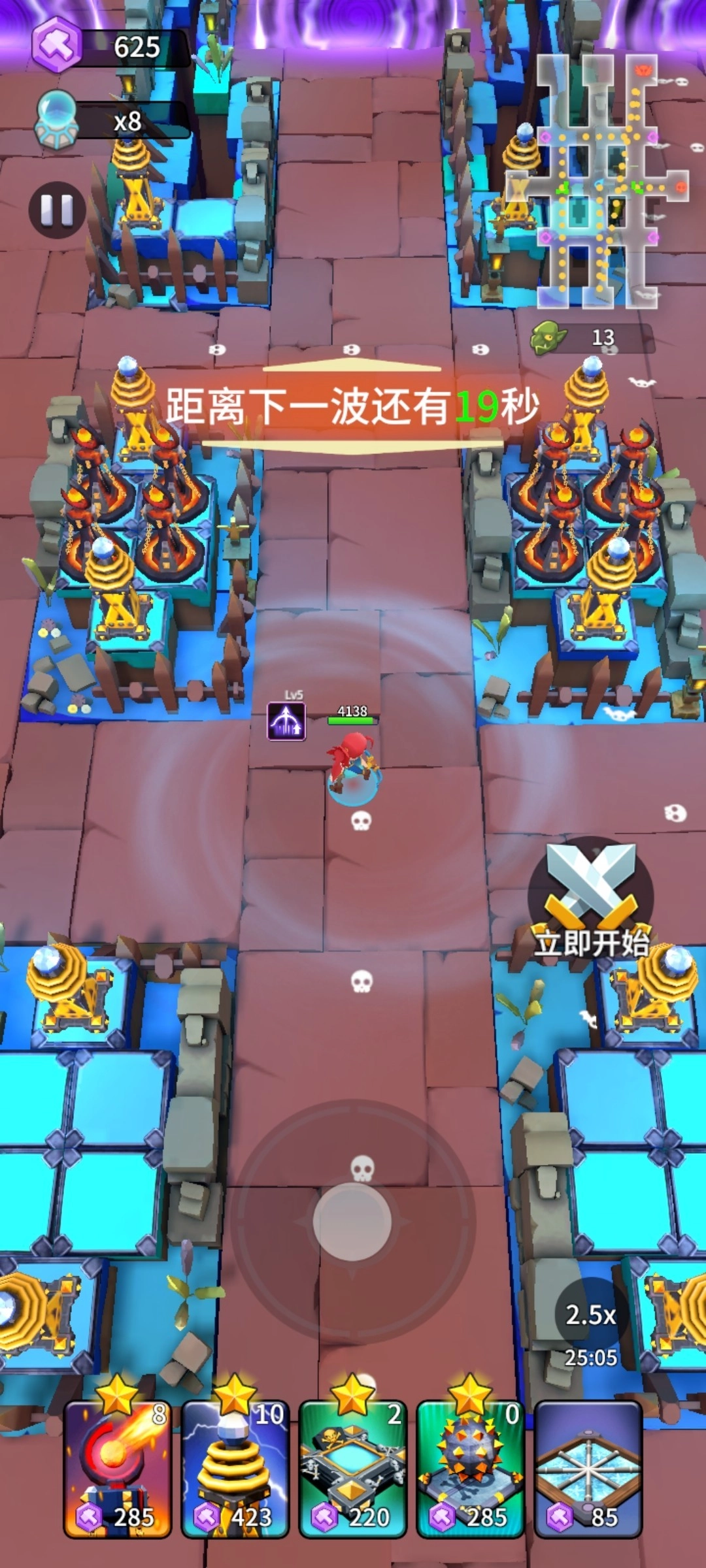 3、火塔需集中布置于核心高地,优先强化左中区域,可有效提高溅射与穿透伤害。