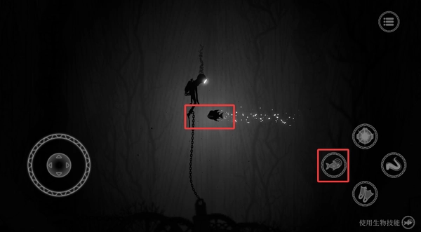 5.通过操作触手图标来控制小鱼,让它游到我们脚边,再利用其生物能力咬断链子。