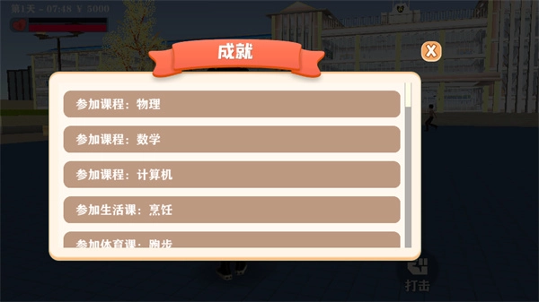 3、留意【成就】系统,完成像【参加课程:物理】【参加课程:数学】这类任务,一步步推动游戏进度并获得对应的成就。