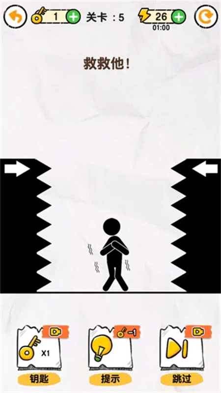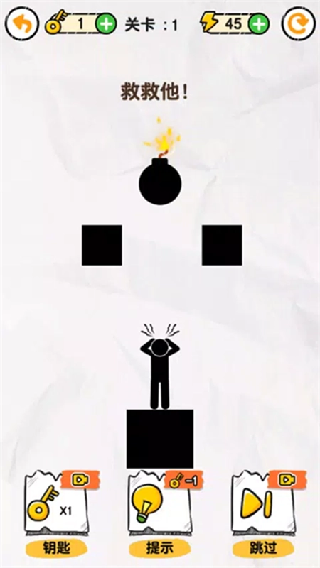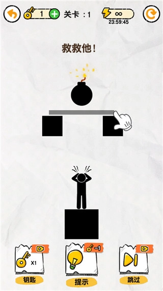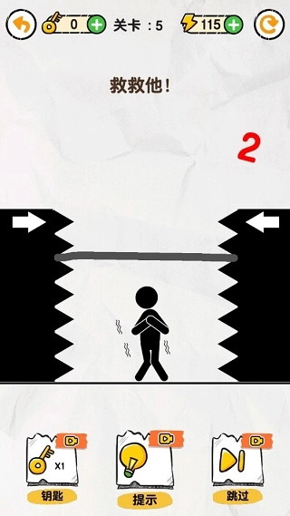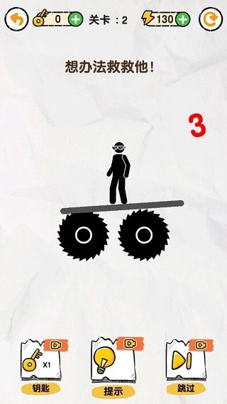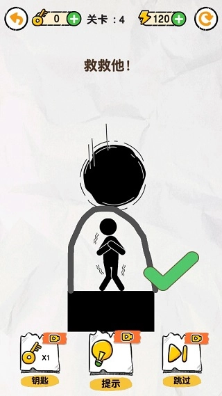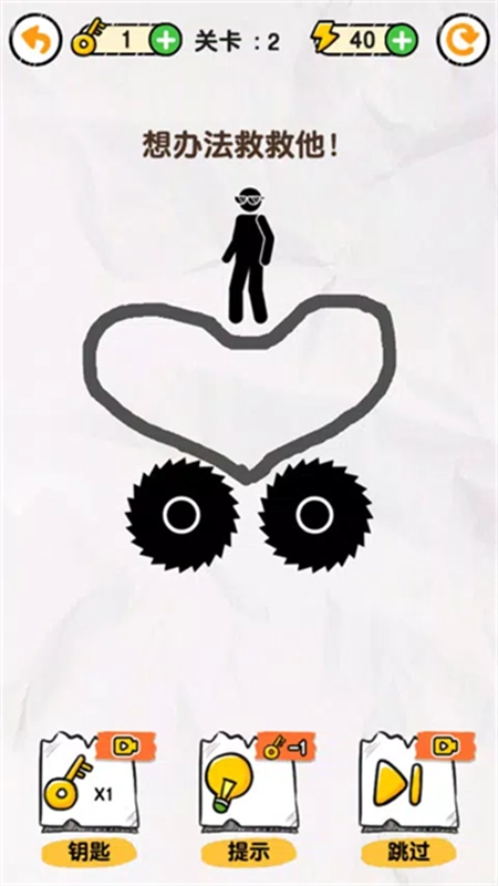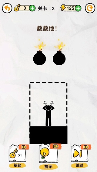 1、以火柴人为主题的画线救援游戏,打开脑洞救救火柴人吧