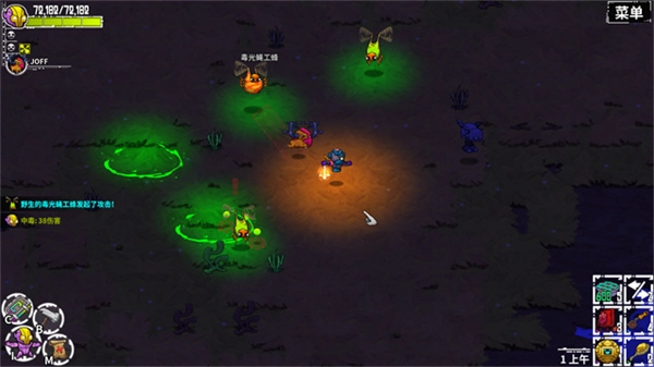 连贯操作后你会发现,角色“蹦一下砍一刀”的节奏完全由手指点击速度决定,砍怪速度快到飞起!系统给武器设定的2秒一次攻击限制被彻底打破!用锤子效果尤其好——锤子能眩晕敌人,只要把走砍技巧用好,就能让敌人一直处于眩晕状态。不过要注意,吃了buff进入飞行状态时这个技巧会失效,因为角色飞起来后落地的动作没法取消。 大家可以先从种树练起:先实实在在砍中树一刀(光有动作没砍中不算数),接着立刻点击空白地面,看到角色蹦起来的瞬间,马上再点树,第二刀就砍出去了——就这三步,多练几次很快就能熟练。