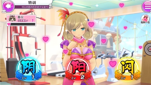 3、消耗不同颜色的体力来特训,可以提升不同属性阴、阳、闪的等级,以增加角色好感度获取更多互动福利。