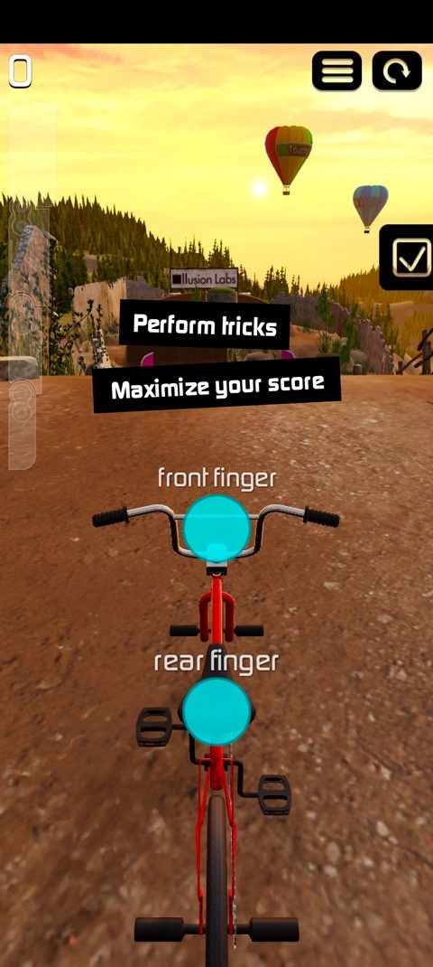 3、请稍作等待,待游戏加载完毕就能进入游戏界面,通过双指滑动的方式操控单车,完成各类酷炫的特技动作。