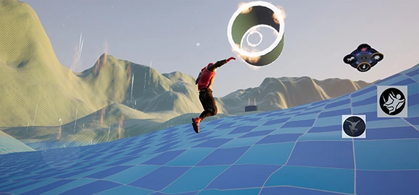 4、从平台上跳下后按住滑翔键,平稳地飞向下一个落脚点;
