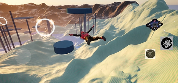 3、界面右下角配置了三个功能按钮,分别对应跳跃、滑翔和变形操作,玩家可借助这些按钮在空中对自身的方向与姿态进行调整;