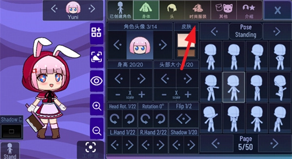 3、最上面有多个功能,可以设置角色的身高、发型、头部大小等。