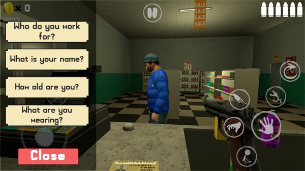 4、这时你可以通过向顾客提问来核实相关信息,一旦发现信息有误,就说明对方是伪人,这种情况下可以用手枪将其击毙。