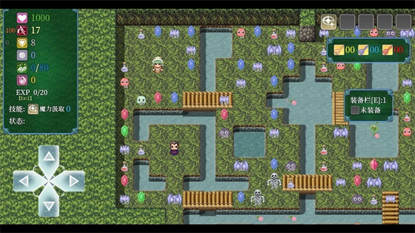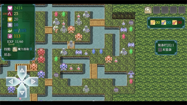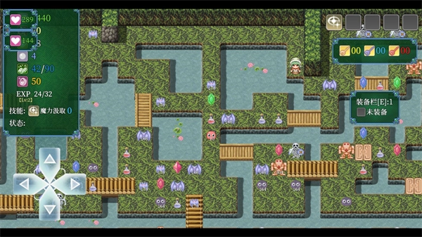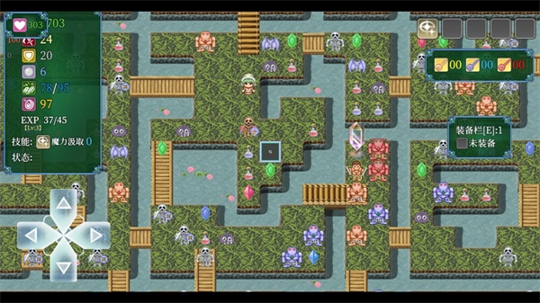 进入关卡后,左侧的按钮可操控角色移动,屏幕左上方显示的是玩家属性。