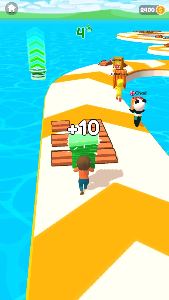 这是一款玩法相当独特的跑酷游戏,玩家需要收集更多木板来铺设前进的路径,借助捷径快速到达终点,从而赢得更丰厚的奖励。