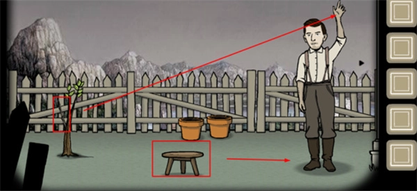 1、先选择场景里的树,接着点击树枝获取道具;之后移动椅子到角色身旁,点击角色,角色会自动坐到椅子上;最后把树枝拖到角色手中,就能取下右上角的鸟窝。