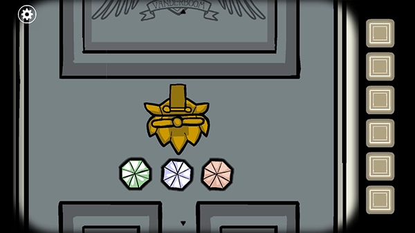 4、进入右侧的房间后,会看到一扇大门。只需点击门旁玻璃上的物品,就能击碎玻璃并获取红色宝石。接着把得到的三颗宝石依次放入大门的凹槽里,最后点击门栓,大门便会开启,这样就能顺利过关了。