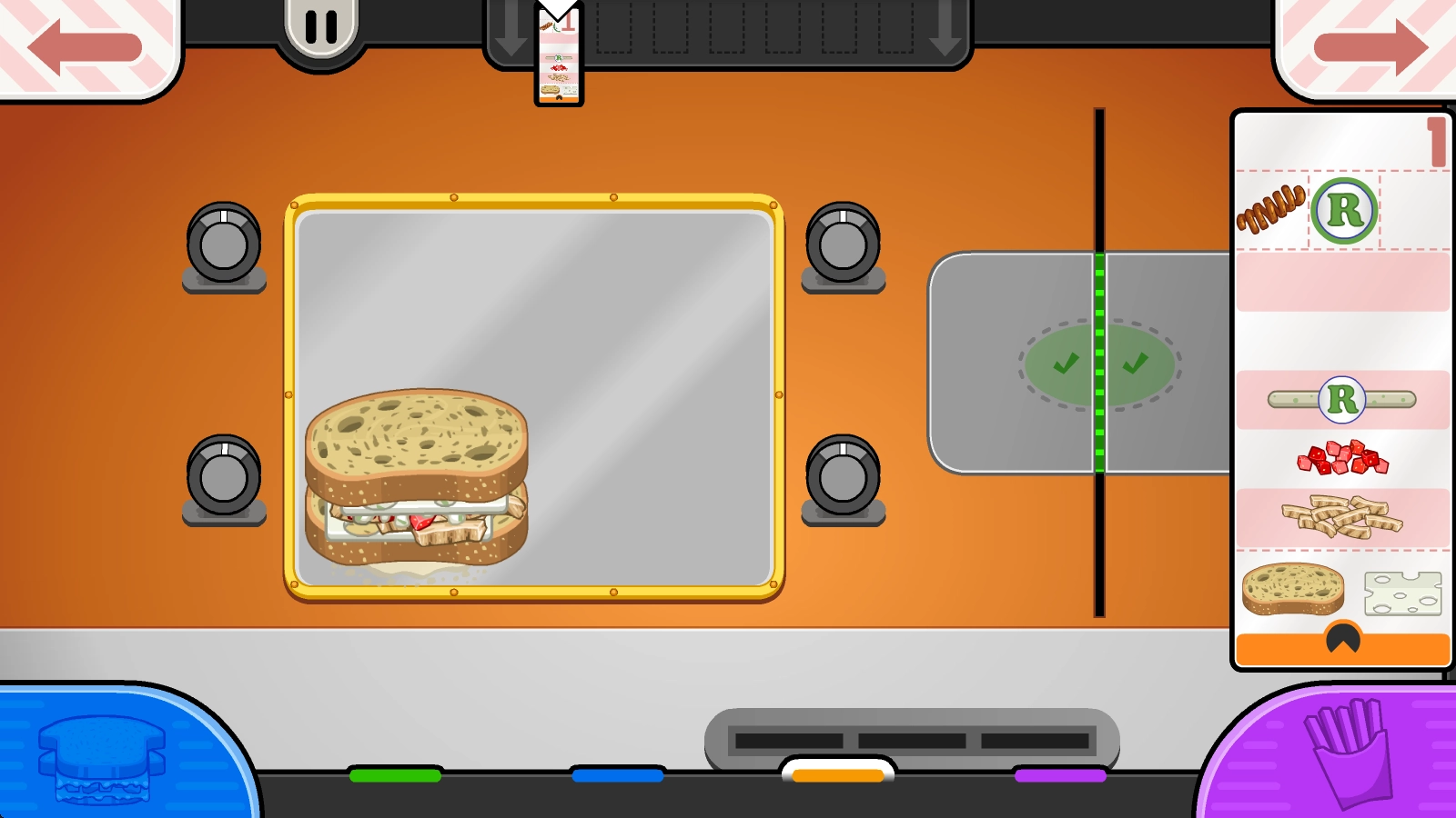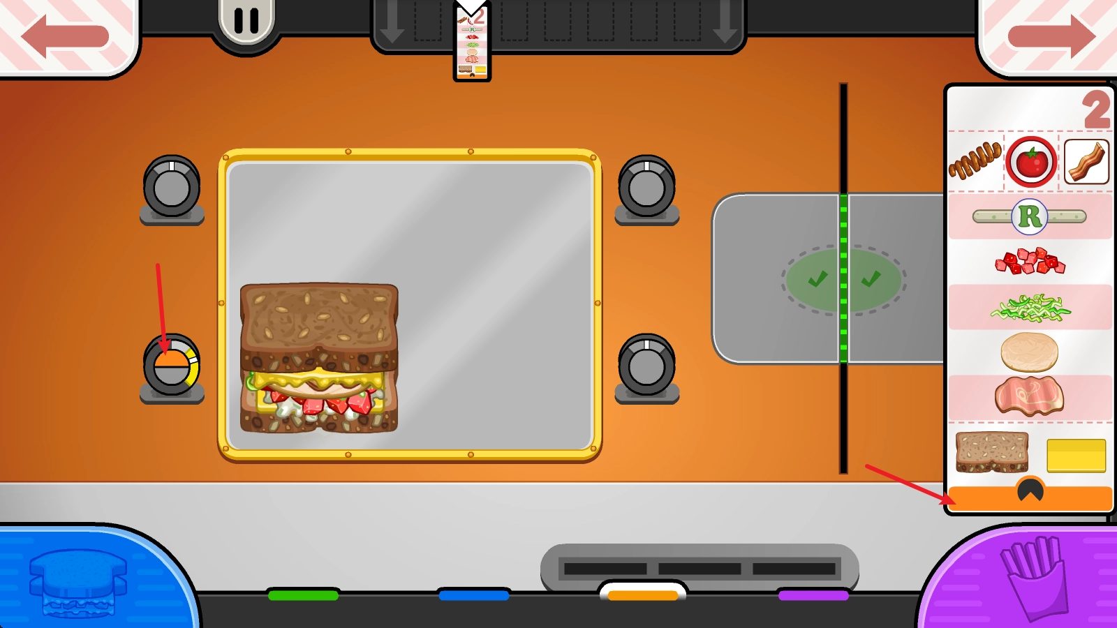 4、接下来就按照顾客的需求,从下往上依次放置配料,点击左侧的按钮就能切换到酱料。