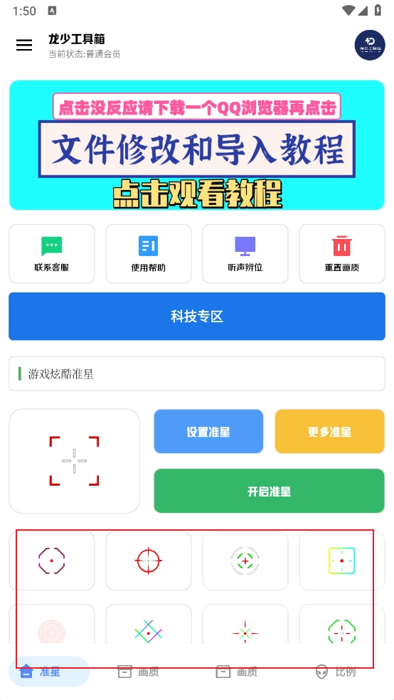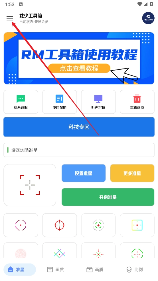 2、进入主页,进入后有多个准星模式,可以根据所需进行选择。