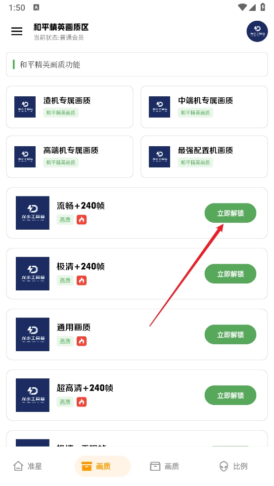 3、切换至画质板块,根据需求解锁相关画质,如图。