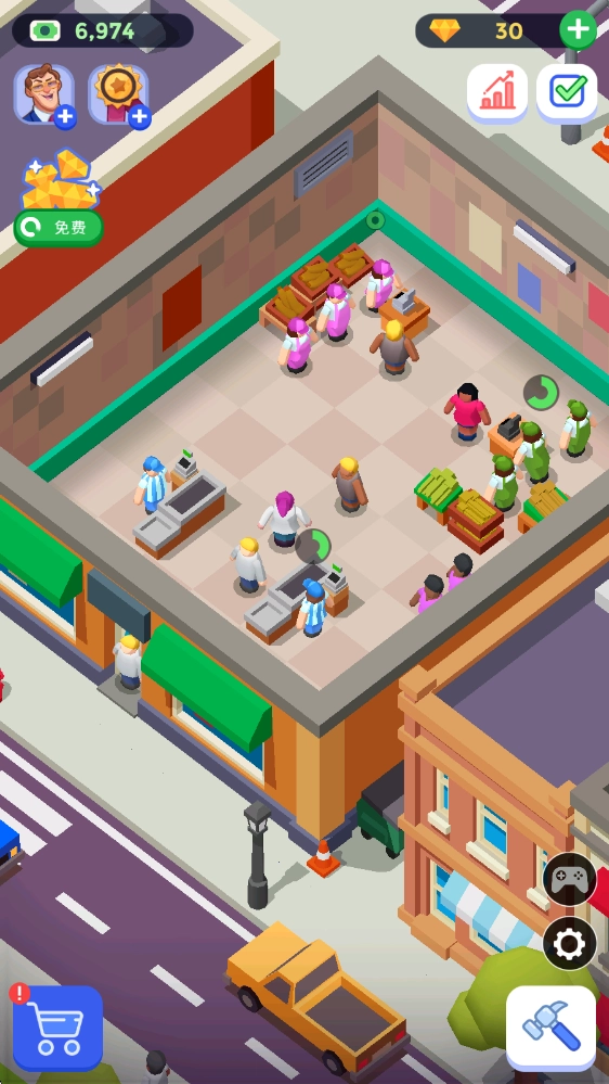 3、随着财富的持续累积,我们能够解锁更多商品区域,聘请更多员工,提升整体经营效率,从而获取更多利润。
