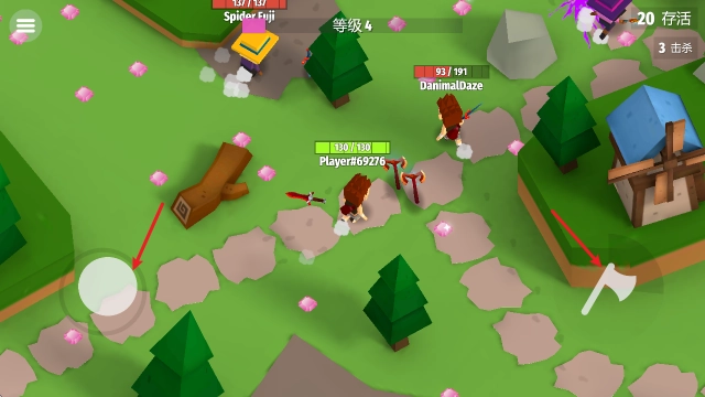 游戏开始后,左侧摇杆用于操控移动方向,右侧按钮则可实现斧头的投掷操作。