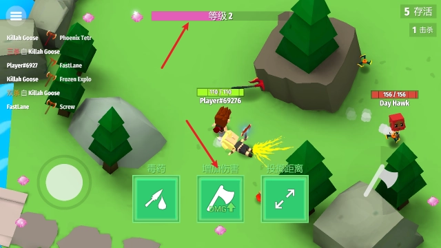 刀光斧影,这款风格别具一格的大逃杀游戏里,玩家们将在有限空间中挣扎求生,手持锋利的斧头相互厮杀,唯有坚持到最后的人才能加冕为王!在这场生存角逐中,你得持续提升等级,解锁各类强力技能来增强自身战力,这样才能更畅快地体验刺激有趣的战斗,将所有对手斩于斧下,笑到最后,斩获最终胜利!