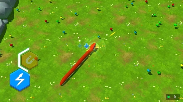 进入场景后,滑动屏幕就能操控贪吃蛇移动,通过吞食场景里的食物让它变长。
