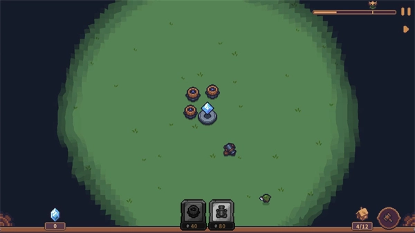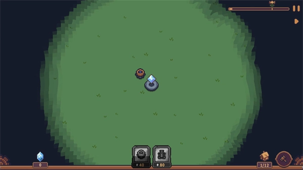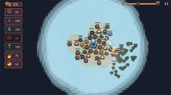 4、正式开启后,位于中间的建筑会自动生成水晶,玩家能够消耗这些水晶来建造各式各样的建筑与炮塔。