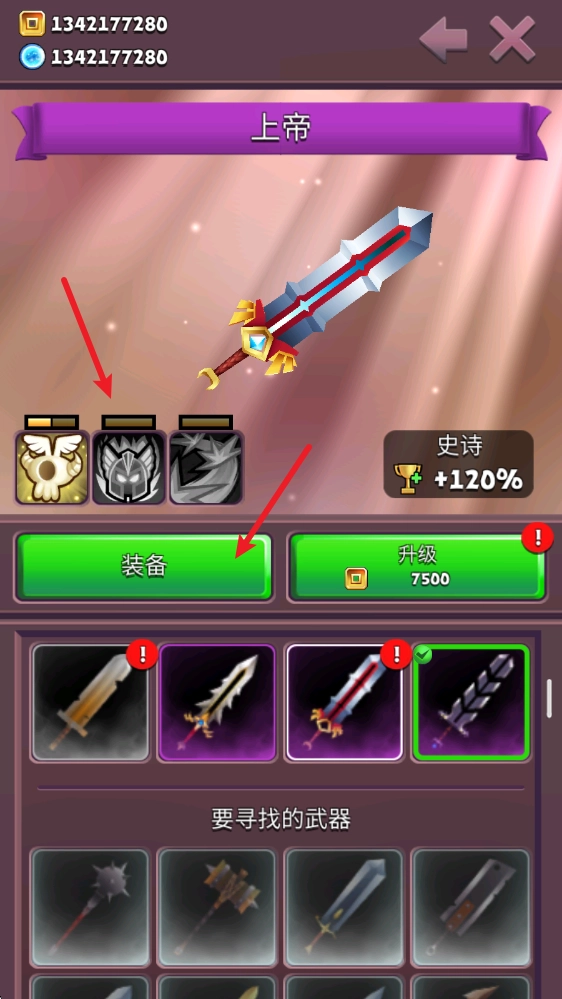 进入后即可选择武器进行装备,还能通过升级解锁其能力。