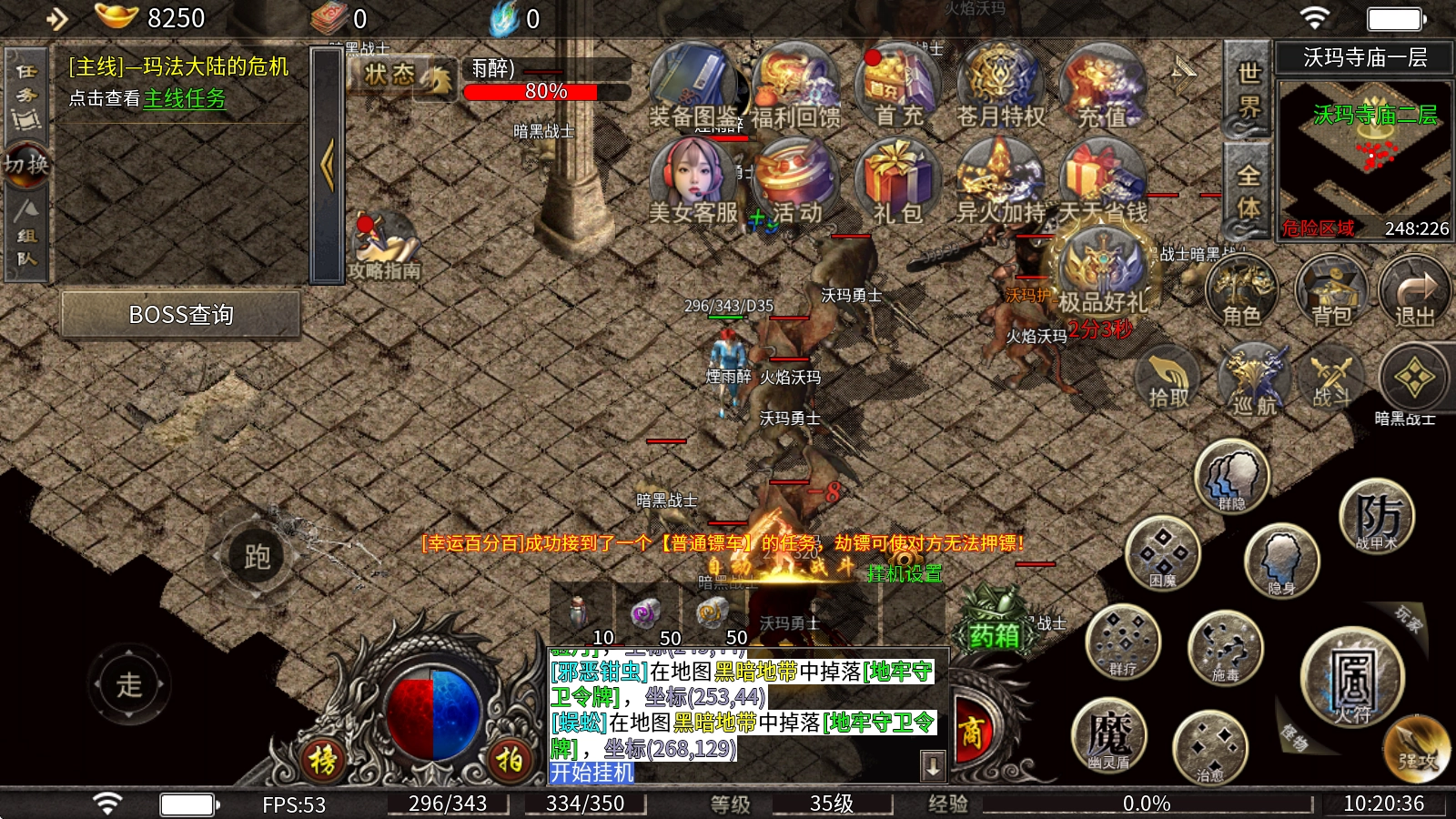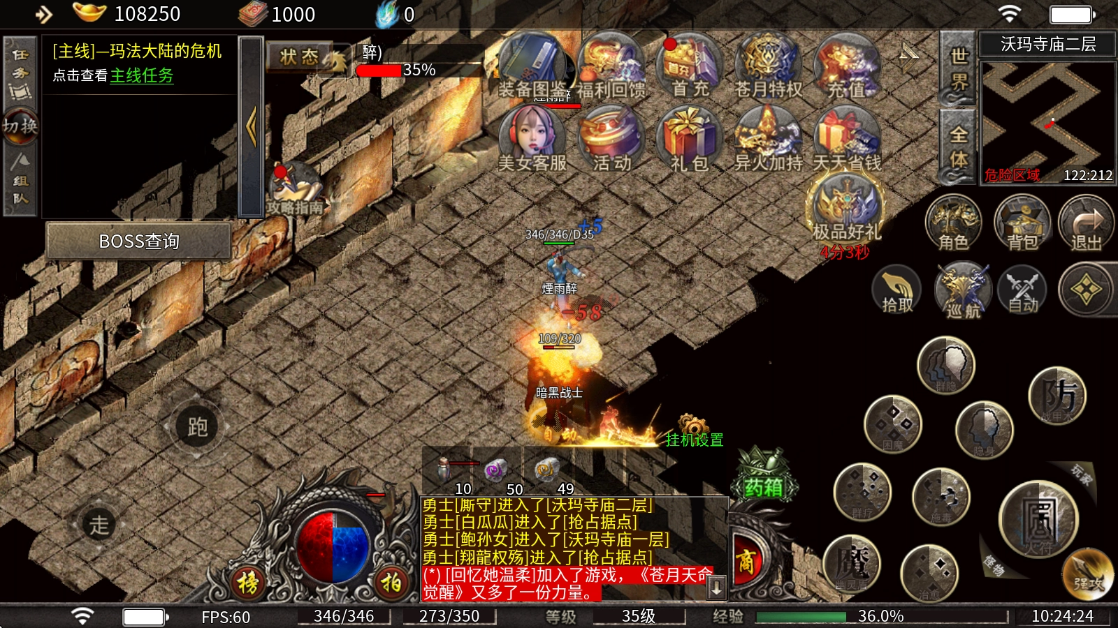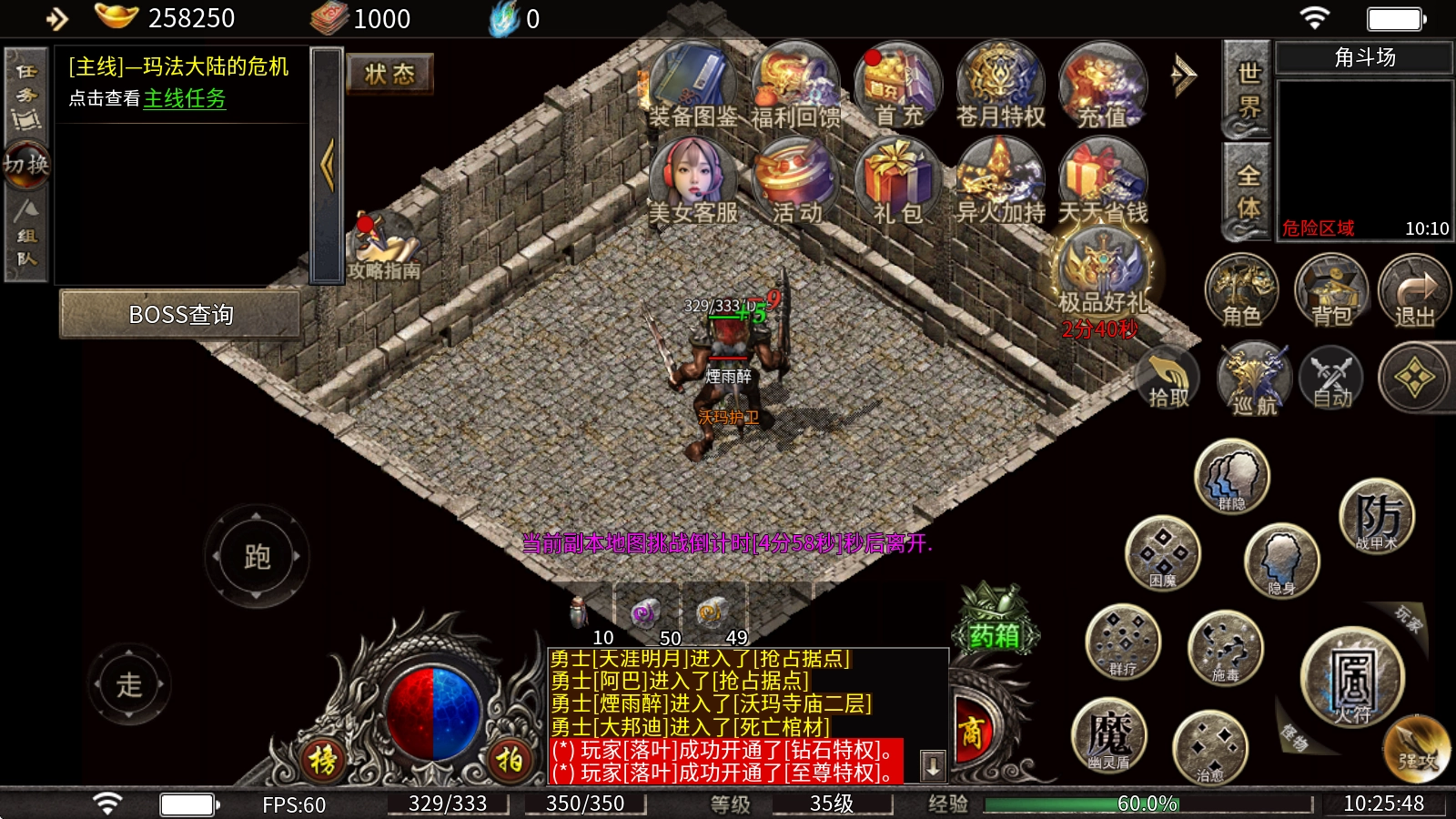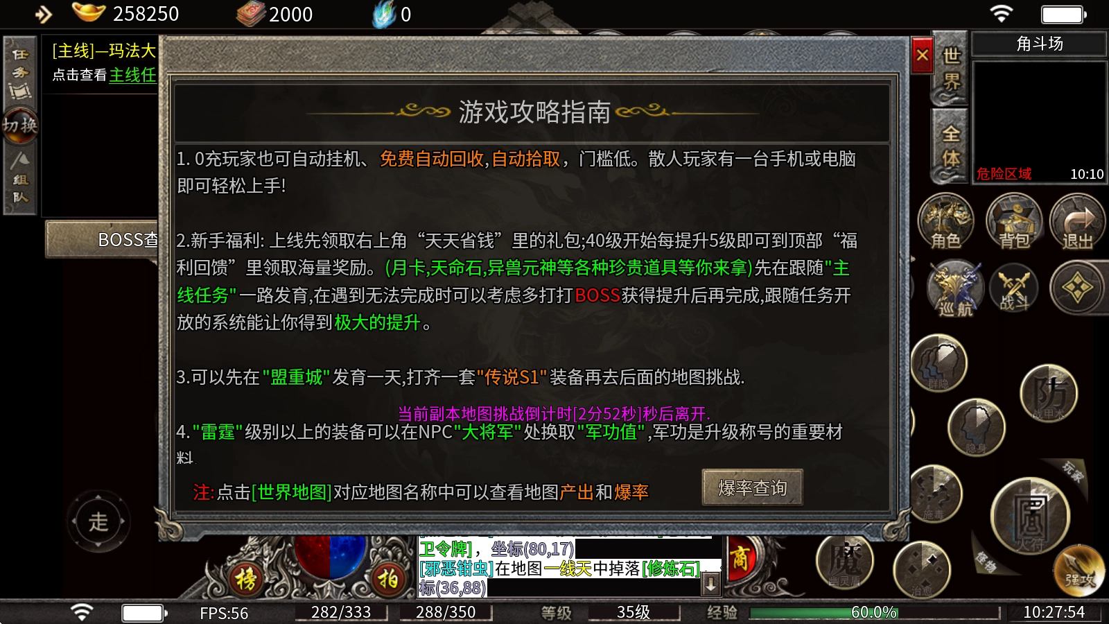4、可以先在"盟重城"发育一天,打齐一套"传说S1"装备再去后面的地图挑战。