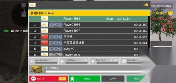 6、掉下去即会结束,结束后会根据游玩情况来进行排名;