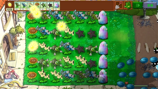 进入游戏后,建议先种植生产阳光的植物,这样能确保我们拥有充足的阳光资源,以便后续购买所需的各类植物。