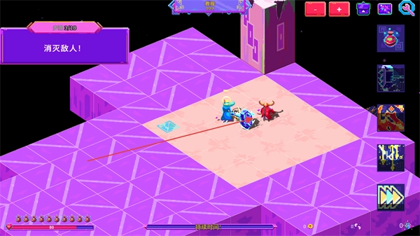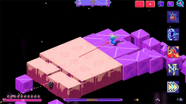 1、操控角色在霓虹风格的方块地图中移动,探索不同区域,寻找敌人和资源。