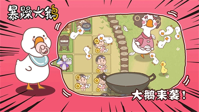 《暴躁大鹅》是一款上手简单却策略性十足的休闲塔防游戏,它采用清新可爱的卡通美术风格,玩法设计自由度极高。在游戏中,玩家将化身农场守护者,面对脾气火爆、行动诡异的大鹅军团,需要合理布局防御设施,巧妙规划资源分配。玩家可以通过建造围栏、修复墙体、部署守卫等方式,阻止大鹅入侵田地。金币会随时间自动积累,可用于升级篱笆、炮台和防御角色。建议优先强化入口区域的火力配置,集中抵御关键路径上的鹅群冲击。