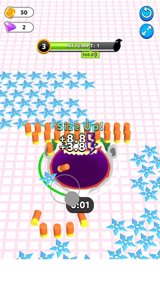 疯狂黑洞的玩法看似简单,却对玩家的操作能力提出了不小的挑战。玩家需要在游戏限定时间内快速判断,吞噬更多更强大的武器。感兴趣的小伙伴们还在犹豫什么?赶紧来挑战一番,看看你能否在计时结束前将场景里的所有东西都吞噬殆尽吧!