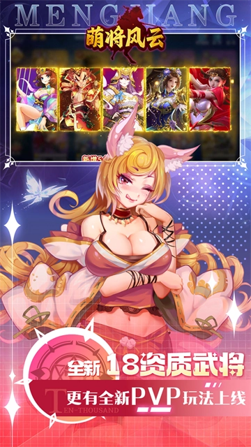 《萌将风云》是一款卡牌策略类游戏,其背景设定以三国为核心框架,同时融入了西游记等中国神话体系中的经典人物。因此,玩家在游戏过程中能够沉浸式体验人、神、魔三界角色齐聚一堂的宏大场景。