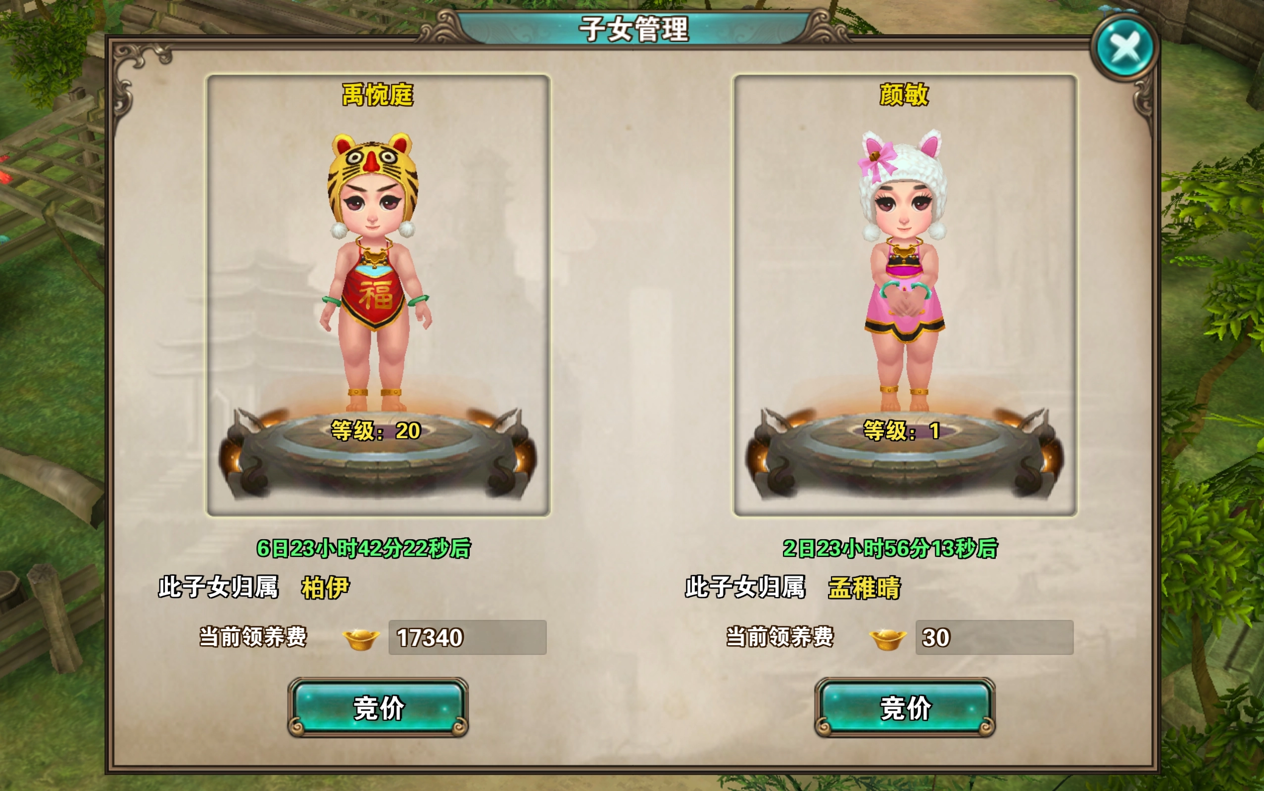 ②子女竞价后竞价失败者将会退还用于本轮竞价的元宝(若未参与竞价直接放弃则无返还)