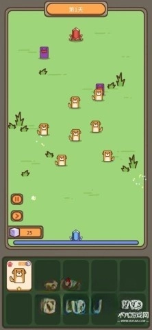 3、在战斗界面(比如第1天)里,动物会自动和紫色怪物这类敌人进行战斗。一定要留意战斗的进展情况,保证它们能顺利战胜敌人。