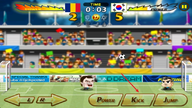 3、靠近足球后点击kick即可射门。