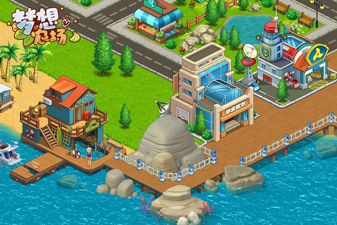 进入游戏后,玩家需要扩建自己的农场,对布局进行个性化设计,完成小麦收割、作物种植,建造各类作坊来制作饼干、蛋糕乃至饮料,同时修缮码头,尽情享受钓鱼带来的乐趣。