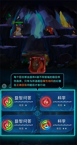 1、闯关的时候玩家需要回答不同的问题,回答正确以后,才能幻兽开启行动。