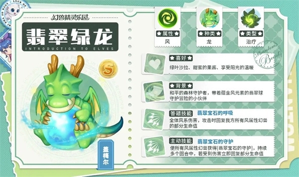 答题技能:全体风系伤害,攻击时回复我方所有风属性幻兽的部分生命值。