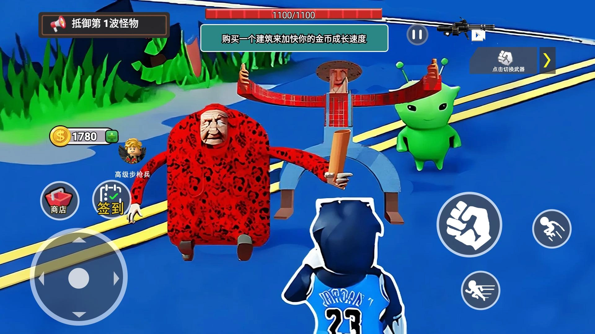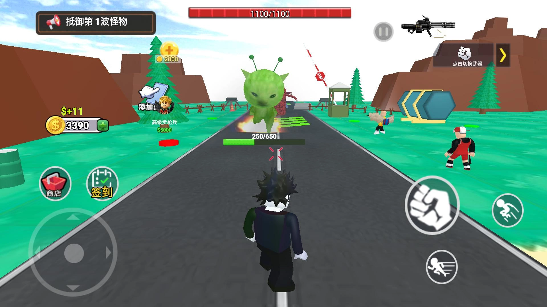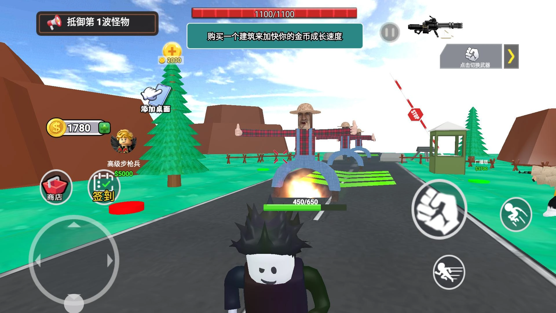 2、使用初始金币在商店购置防御建筑和初级步枪兵,将它们合理部署在关键点位,构筑基础防线来抵挡怪物的进攻。