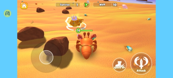 1.这是一款以海洋生物为主题的多人在线PVP游戏,玩家将化身为螃蟹,在辽阔的沙滩上进行策略性的对抗。