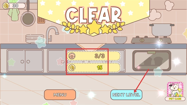 4、完成【3/3-顾客订单】后即可通关并获得相应金币,点击界面上的【NEXT-LEVEL】按钮就能进入下一个关卡。