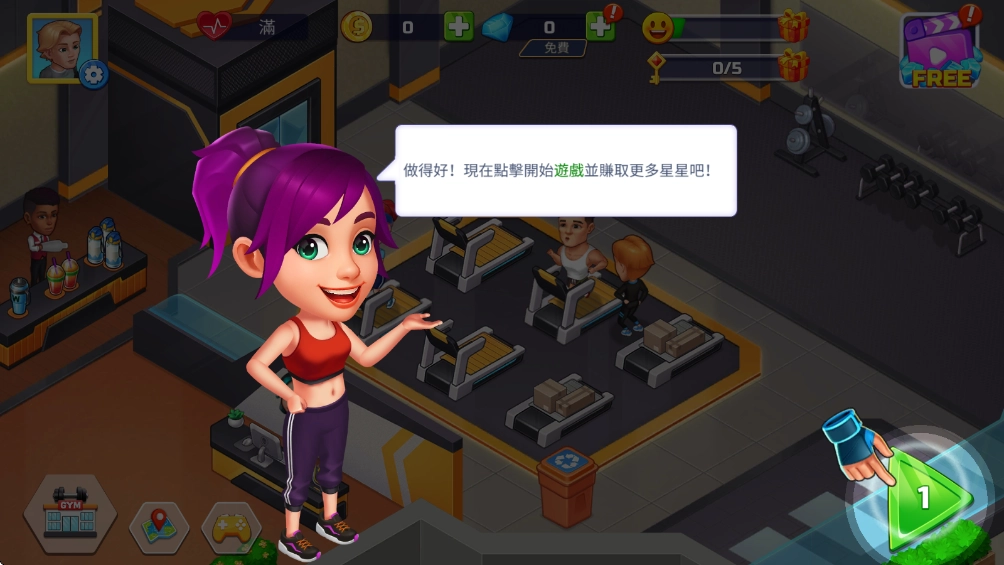 《快乐健身》是一款围绕健身房经营展开的模拟管理游戏,玩家将化身为全能型健身中心管理者,从无到有地打造属于自己的健身商业帝国。这款游戏巧妙融合了设备迭代升级、员工专业培训、会员个性化服务等丰富多元的经营元素,凭借清新明亮的卡通美术风格与简单轻松的操作模式,让玩家在方寸屏幕间就能尽情体验从简陋破旧的小型场馆逐步发展成为顶级奢华健身会所的成长蜕变乐趣。