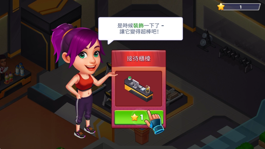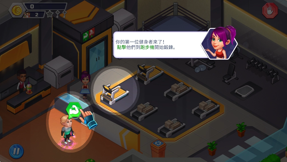 1、启动游戏后点击屏幕开始建设个人健身中心。