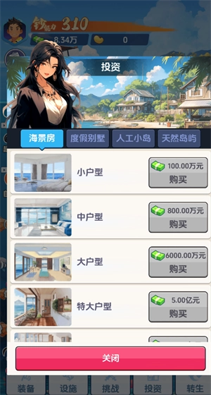 1、点击经营:该游戏运用点击类玩法,玩家需持续点击屏幕以获得各类资源。