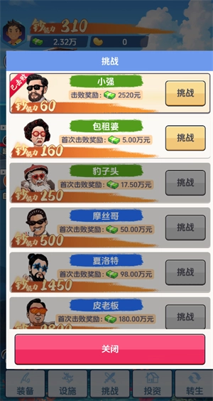 4、挑战Boss可以赢取丰厚奖励,获得大量金钱