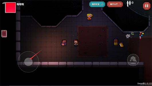 1、通过左侧的滑动轮盘,可以控制角色的移动