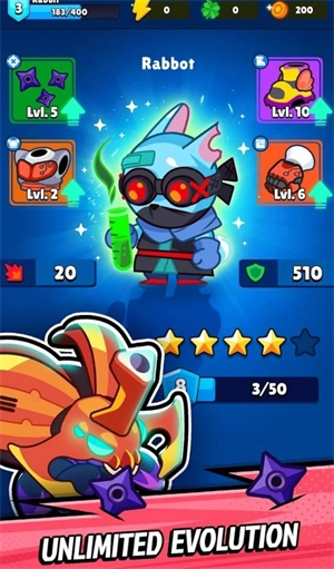 1、游戏提供多种兔子角色供玩家挑选体验,多样的技能支持自由搭配,让玩家感受别具一格的割草乐趣。